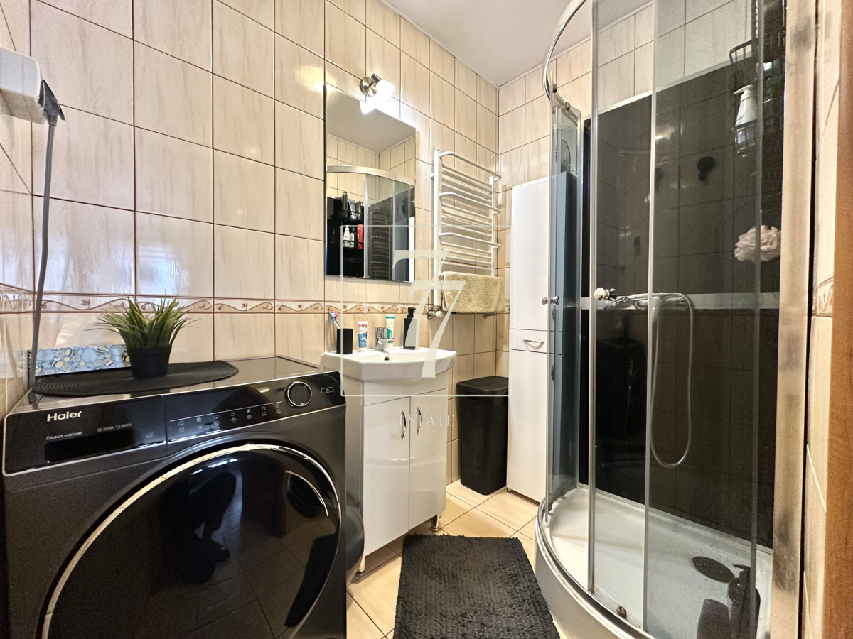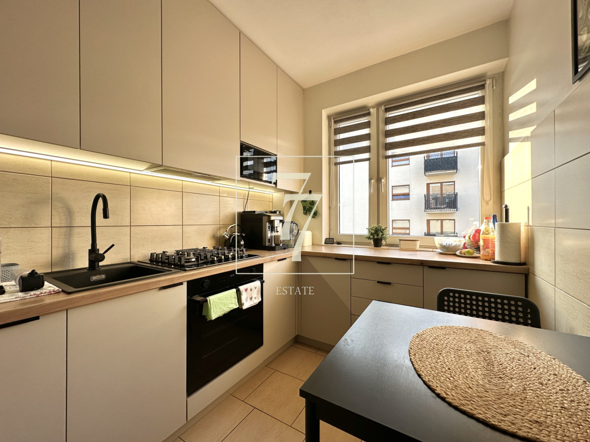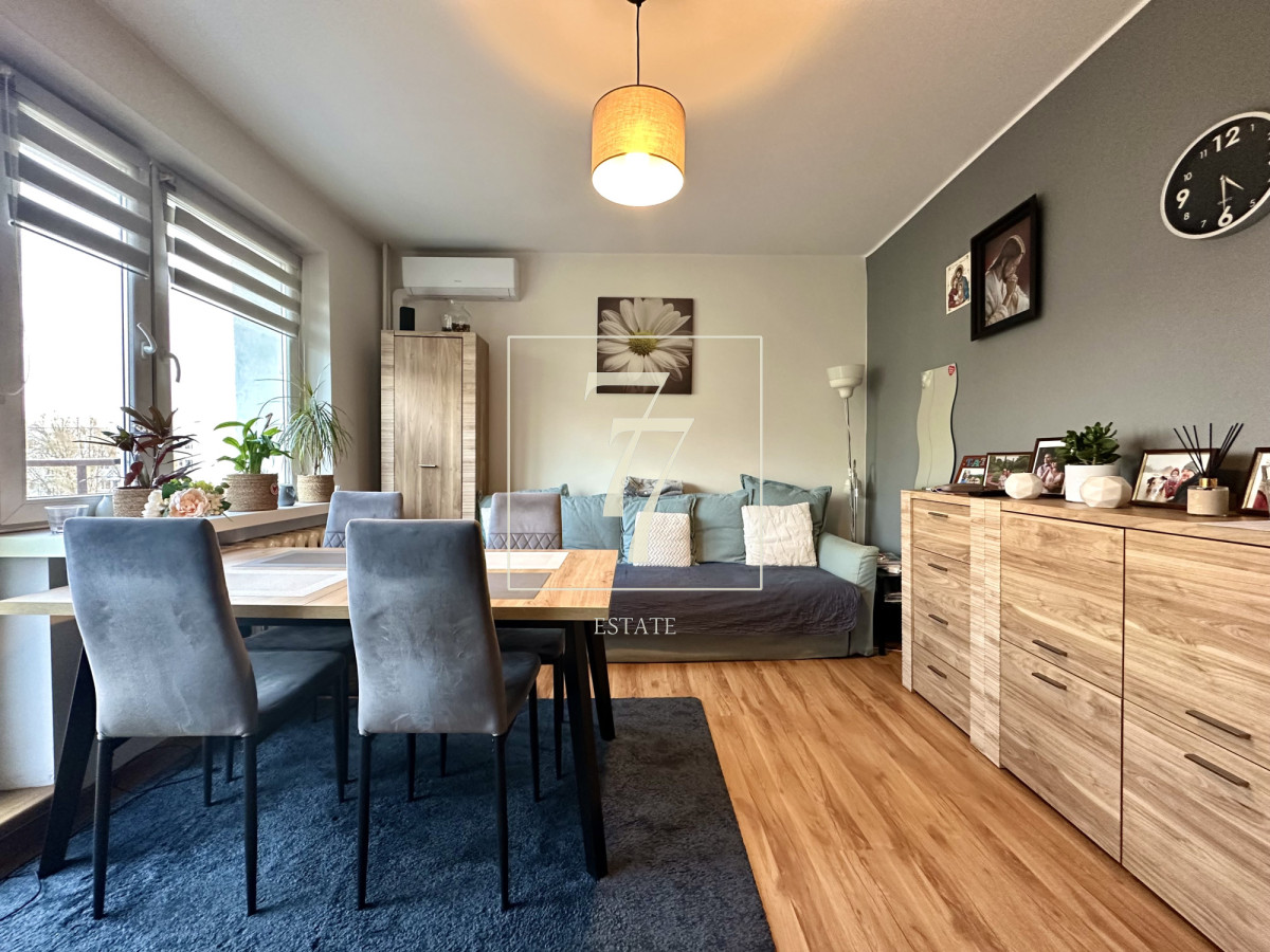 Mieszkanie sprzedawane jest z pełnym umeblowaniem i nie wymaga dodatkowych nakładów finansowych. W salonie zamontowana została klimatyzacja. Lokal posiada dwustronną ekspozycję okien (wschód-zachód), która zapewnia dobre doświetlenie pomieszczeń.